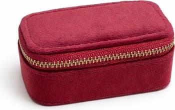 Travel with your jewelry in style using this elegant mini jewelry travel case. Crafted with a soft velvet exterior and a structured protective design, it keeps your favorite pieces safe from scratches, tangles, and loss. The thoughtfully designed interior features dedicated compartments for rings, earrings, and small accessories, making organization effortless. Finished with a smooth gold-tone zipper, this compact and lightweight case is perfect for travel, daily use, or gifting.