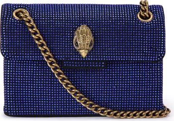 A signature crystal-encrusted eagle head and lustrous jewels illuminate a compact crossbody bag fashioned with a pull-through chain strap that converts for shoulder or crossbody wear.