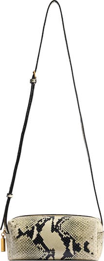Crafted from snakeskin-embossed Italian calfskin, this compact crossbody bag has an elongated East/West shape inspired by the popular pencil cases of the '90s. A polished Empire zipper pull brings a touch of art deco glamour to the otherwise minimalist design.