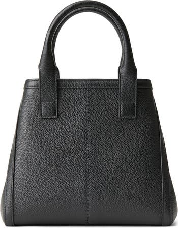 Crafted from grained calfskin leather, this sculptural tote features an interior clip that transforms its silhouette into a compact trapezoid shape.
