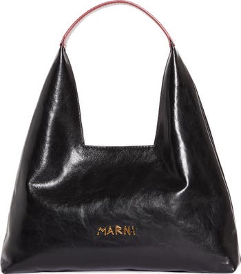 A golden hardware take on Marni's Mending logo fronts this softly structured leather bag topped with a contrast handle.