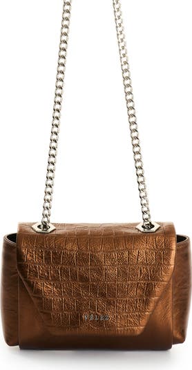 A design that blends femininity and strength in an iconic silhouette. This crossbody bag, stands out with its croc-embossed flap and shiny nickel hardware