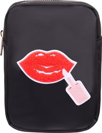 What it is: A scaled-down nylon canvas cosmetics bag detailed with a chenille appliqué and refined with gleaming hardware.