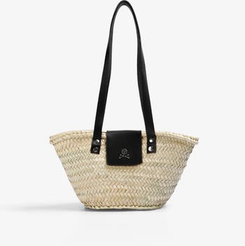 Classic raffia bag equipped with a strong handle, perfect for casual summer outings and effortless styling.