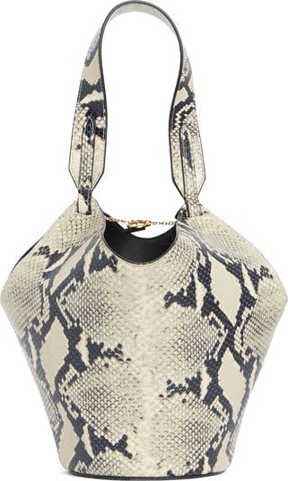 Mini Lotus Snakeskin Embossed Leather Tote Bag