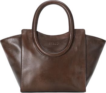 Debossed logo detailing understatedly brands the rich leather of a scaled-down tote fitted with rolled top handles and an optional crossbody strap.