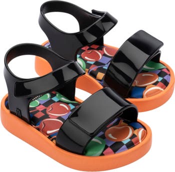 Your youngster will be ready for fun in the sun with this quarter-strap jelly sandal featuring a bright, colorful footbed and signature bubblegum scent.