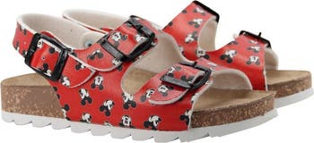 The Mini Mickey Print Sandals featuring an all-over print, an open toe, an ankle strap with a side buckle fastening, a branded insole and a flat rubber sole.