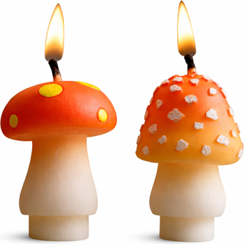 Like tiny mushrooms gathered from a woodland forest, these petite candles add a whimsical touch wherever they are placed. The set includes two different mushroom shapes—one rounded and one pointed—each carefully hand-poured in soy-blend wax with charming sculptural details. Small yet eye-catching, they bring a playful cottagecore accent to shelves, table settings or seasonal décor displays—and make a delightful little gift.