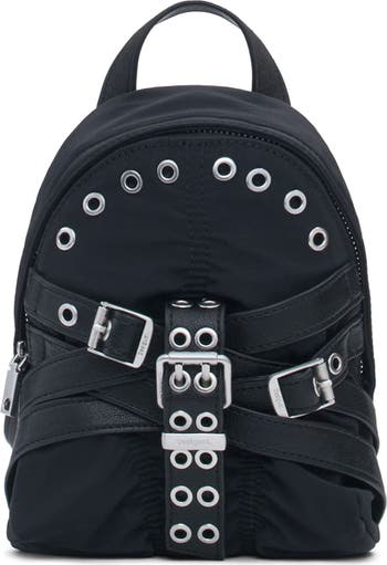 Polished grommet hardware puts a moto-chic spin on this sized-down backpack that's the perfect way to make a statement.
