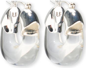 Polished caps catch the light on these clear resin hoops crafted in an organic-inspired silhouette to evoke fluid shine.