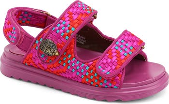 Vibrant, intricately woven satin and a crystal-embellished eagle head bring kid-approved color, sparkle and signature style to this sporty sandal secured with three adjustable straps.