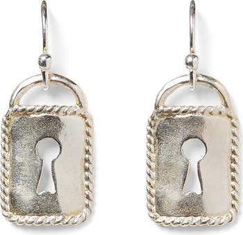 These handcrafted drop earrings feature sterling silver keyhole-lock charms that let everyone know whispered secrets are safe with you.
