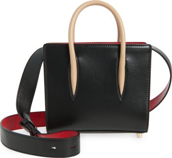 Signature red-soled hardware brings elevated branding to a scaled-down tote fashioned from smooth Italian calfskin with contrast carry handles and spot-splashed sides.