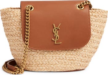Woven straw and smooth leather create an elevated and earthy crossbody bag that carries resort vobes wherever you go.