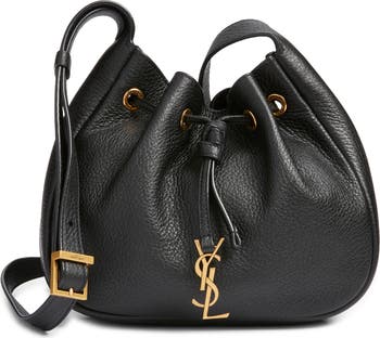 The maison's iconic interlocking Cassandre logo brands this mini-sized version of a hobo bag made from beautifully grained deerskin leather and cinched with a drawstring closure.