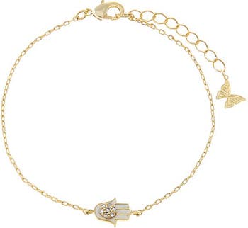 Light up your everyday looks with the Mini Pave Hamsa Charm Bracelet by Adina Eden, a standout Bracelet. A modern classic, this gold plated bracelet for women features clean detail and comes in Gold. When you want your outfit to feel complete, this flexible piece blends into your style so well, it feels like it was always there. Layer this gold plated bracelet with accents from our Tennis Bracelets collection to make your everyday styling effortless. It blends into your style while still standing out beautifully.