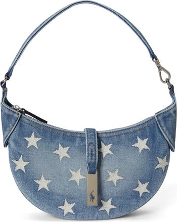 Part of the Polo ID collection inspired by a sense of adventure, romance and optimism, this star-patterned denim shoulder bag features a double-pillow gusset design with piping that creates two distinct compartments. A versatile strap converts into a croissant-shaped wristlet.