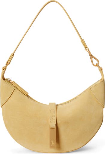 Part of the Polo ID collection inspired by a sense of adventure, romance and optimism, this supple suede shoulder bag features a double-pillow gusset design with piping that creates two distinct compartments. A versatile shoulder strap converts into a croissant-shaped wristlet.