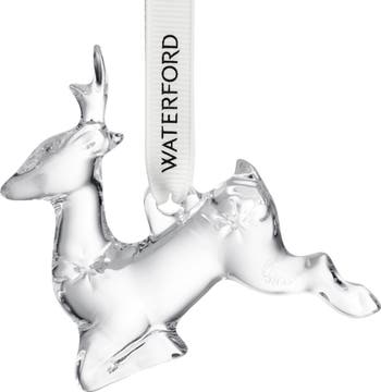 Bring the magic of the holiday season into your or your loved one's home with this festive prancing reindeer ornament made from light-catching crystal. The ornament is suspended from a branded ribbon.