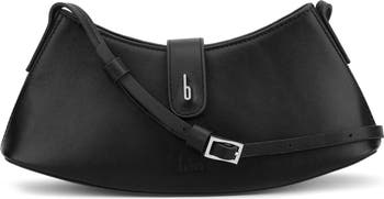 A curved silhouette adds a modern verve to this sculptural shoulder bag handcrafted from leather and accented with gleaming logo hardware.