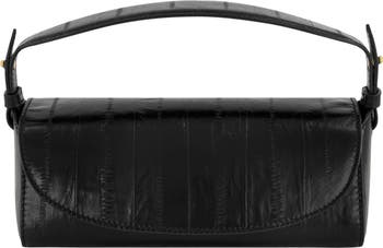 Brushed hardware and eel-embossed leather highlight the East/West profile of this structured bag featuring an optional crossbody strap for versatile wear.