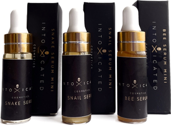 - SNAKE SERUM: Intoxicated Cosmetics Snake Serum is a luxurious, daily-use anti-aging formula powered by clinical percentages of SYN-AKE® Peptide, which helps skin to look relaxed, visibly reducing and preventing mimic wrinkles (botox-inspired efficacy) and re-densifies skin from within, smoothing deep wrinkles.