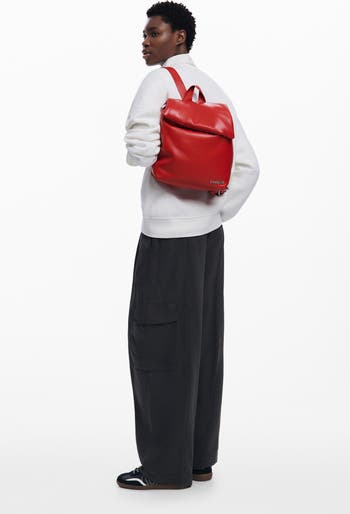 A cushioned ride for your gear as well as an eye-catching accessory, this sheepskin backpack is made with allover padding that protects the contents and puffs the sleek silhouette.