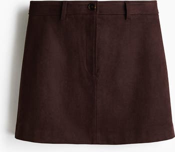 A-line mini skirt in woven fabric with a zip fly and button. Unlined.