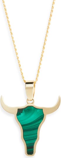 Get hooked on the horns of a steer pendant set in 18-karat gold.