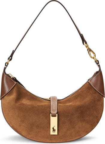 Part of the Polo ID collection inspired by a sense of adventure, romance and optimism, this mixed-media shoulder bag features a double-pillow gusset design with piping that creates two distinct compartments. A versatile shoulder strap converts into a croissant-shaped wristlet.