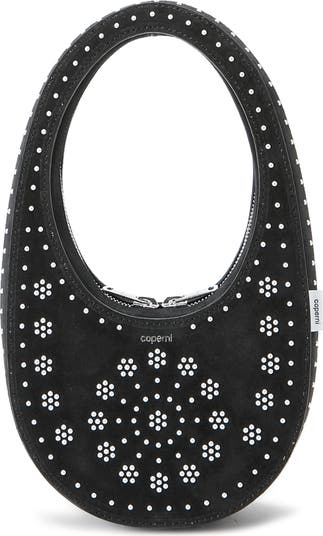 This season's version of the fan-favorite bag is updated in black suede illuminated with light-catching crystals for a sculptural look that toys with futuristic fancy. The bag's geometric silhouette is inspired by the minimalist 'swipe' icon that unlocks many of today's phones.
