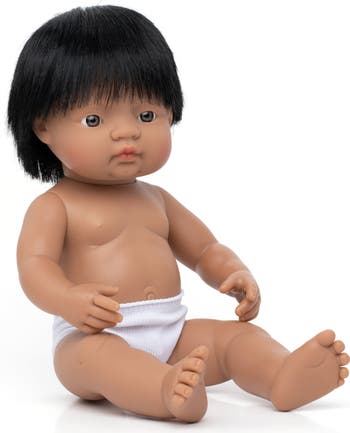 Children love caring for their very own baby doll. The 15" Anatomically Correct Baby Doll from Miniland has rooted hair, articulated arms and legs allow children to dress the doll and pose it lying down or sitting up. The Baby Doll has beautiful, superbly crafted facial features and is lightly scented with a pleasant vanilla fragrance. The baby doll arrives wearing cute white underwear bottoms. Can wear additional clothing from the Miniland 15" Fashion Collection (sold separately). The doll is made of smooth vinyl, so it's comfortable to hold and easy to clean. Role play with dolls helps children develop their imaginations, and helps them learn concepts such as family, diversity, and cooperation. Miniland Educational, a leading toy manufacturing company with production facilities in Onil, Spain, is known worldwide for safe, high-quality educational toys. A great deal of thought and research goes into the design and production of Miniland Toys, but we never forget the importance of play. Manufactured in Spain, according to strict European Union safety guidelines.