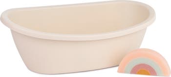 - Baby bath tub made of bioplastic from sugarcane. Includes a rainbow sponge. Fits dolls up to 15 3/4" and is suitable for ages 3 years and up.