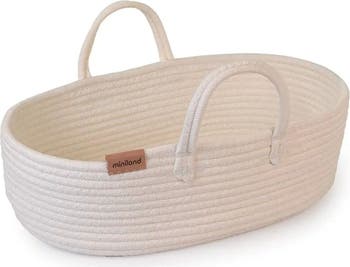 A cotton doll basket with handles, it is an easy way to take Miniland baby girl and boy dolls of up to 15 3/4 inch with you. It can also be used as a basket or small crib.