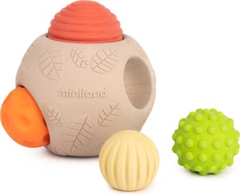 - Made from 100% natural, biodegradable rubber from the hevea tree, this collection of sensory balls is painted with natural pigments, making them safe for infant and toddler exploration!.