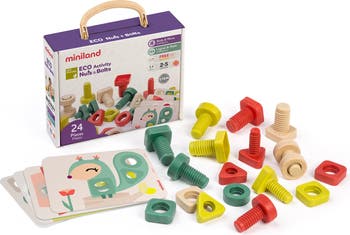 - 28 piece set includes: 12 Nuts, 12 Bolts, 4 Activity Cards. Suitable for children ages 2 - 5 years.
