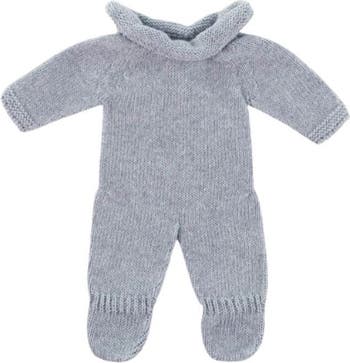 Blue and gray knitted pajamas for dolls and dolls 12 5/8". The new collection of knitted clothes for dolls Miniland Dolls, is made from recycled materials. All of them in natural shades and with a "handmade" air.