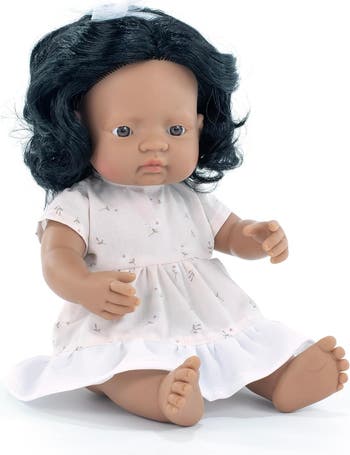 - Discover the world of friendship! The "My Friends & Me" 15" Baby girl doll with black hair and Hispanic features is a valuable member of Miniland's new collection of dolls. Made of high-quality soft vinyl with a light vanilla scent. Articulated head, arms and legs that can fully rotate allowing the doll to sit, stand or lie down.