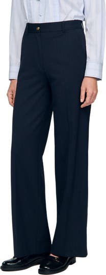 Straight-leg trousers with fine stripes, belt loops and a decorative button.