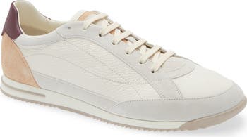 A contemporary reinterpretation of the classic runner, this mixed-leather sneaker updates the design codes of casual wear through refined materials and workmanship. The upper is crafted with tapered proportions, delivered with velvety suede accents, while the rubber outsole is thin and lightweight, with a textured sole for grip.