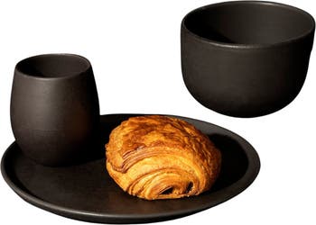 Perfect for smaller gatherings and everyday dining, our Minimalist Dinnerware Set combines elegance with practicality. This set includes 4 round flat dinner plates, 4 organically shaped dinner bowls, and 4 cups, blending classic and natural forms to create a harmonious aesthetic. While compact, this set offers all the essentials for a refined table setting, making it a wonderful option for smaller households or those who appreciate a minimalist style. Crafted from durable stoneware, each piece is designed for daily use, combining timeless beauty with functional design. *One set is composed of four of each of the items listed below. Total of 12 pieces Dimensions: Flat Salad Plate: Diameter: 9.4 inches (23 cm), Height: 0.7 inches (1.7 cm) Dinner Bowl: Diameter: 5.5 inches (14 cm), Height: 3 inches (7.5 cm), Capacity 25 oz (75 cl) Cup: Diameter: 3.7" inches ( 9.5 cm), Height: 3.6 inches (9 cm), Weight: 0.9 lbs ( 0,4 kg), Capacity: 10 oz ( 30 cl) Specifications: Food safe Microwave and dishwasher safe Oven use: because stoneware is a fragile material, we advise extra caution as we offer no guarantee. Check out our Use & Care Handmade Material: Enameled stoneware Completely free of toxic heavy metals (like cadmium and lead) and carcinogens found in other, less robust, ceramic forms. Made in Tunisia Disclaimer: Our products are handmade by ceramists, one at the time. As such, they're all unique in their own ways and you may spot a small finger print on the base, or the imprint of the grid onto which they were placed when fired. Please note that these are the marks of true craftsmanship. Our stoneware mugs may get hotter than usual. Packaging marks may be spotted and your flatware can leave superficial marks. Yet, they can both be easily taken off. Check how in our Use & Care @ www.gharyan.ca