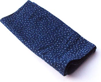 These organic cotton cloth napkins are hand spun and hand woven and then block printed and hand dyed in Indigo. Take it to a picnic or set up your dining table! Indigo's look lovely anywhere! It has a nice fine indigo border too. After using it as napkins, use it as a small table cover. You can even turn it over and enjoy the exotic indigo hues. • block printed by hand using a wooden carved block • hand dyed in Natural Dyes • color - indigo, white • fabric - organic cotton • size - 19" x 19" • set of 4 *Please note that slight color variations may occur, as each piece absorbs natural dyes differently—a beautiful part of the handmade process. --------------------------------------- ABOUT BLOCK PRINTING Block Printing is an ancient printing technique especially with the use of vegetable dyes. After the wooden block is carved with the pattern, the fabric is then prepared with multiple washes to make the fiber ready to take the dye. With the process of multiple printings and washing before the final product is placed in a dye bath of flowers and barks, the fabric goes through the hands of the block printer and dyer with utmost care. That same care is passed onto the consumer who wishes to take part in this process of honoring the craft and the earth that gives us so much.