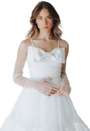 Completely sheer - no beading. Fingerless sheer gloves. These are a "plain" version of the Valiant Gloves. No stretch to them so they have to be"worked" up the arm but look amazing when nice and fitted. Size up for a more "slouchy" look.