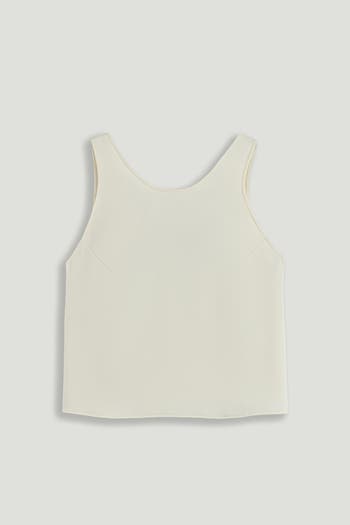 A clean-cut essential for elevated everyday style, this sleeveless crepe top is tailored in a regular fit with a modern cropped silhouette. Featuring a classic round neckline and a daring low-cut back, it’s crafted from lightweight woven crepe for a crisp, structured drape. Ideal for layering or styling solo, this minimalist piece transitions seamlessly from day to night.
