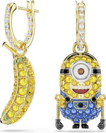 Bello, bling lovers! Bring Minions-level mischief to your lobes with these mismatched hoop earrings, where Stuart and his beloved banana take the spotlight in scores of sparkling crystals.