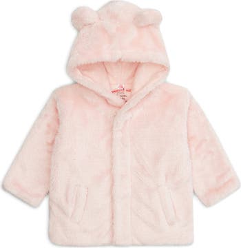 Bundle up baby for chilly weather with this luxuriously plush faux-fur jacket complete with a snuggly hood topped with adorable bear ears.