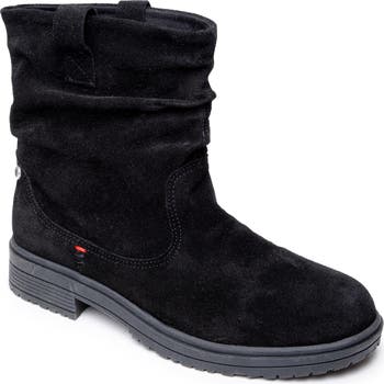 This slouchy bootie made of water-resistant suede has a Minookamii sole pattern designed by White Earth Nation Ojibwe artist Hannah Standstrong.