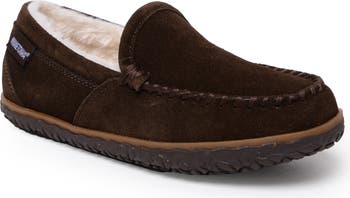 A water-resistant suede slipper lined with plush faux fur will keep your feet cozy and comfortable all season long.
