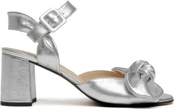 A knotted bow adds a dose of whimsy to a Spanish-made sandal shaped from lustrous metallic leather and lifted by a wrapped block heel.